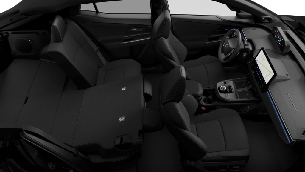 - 60/40 split, reclining fold-flat rear seats with center armrest and cup holders.