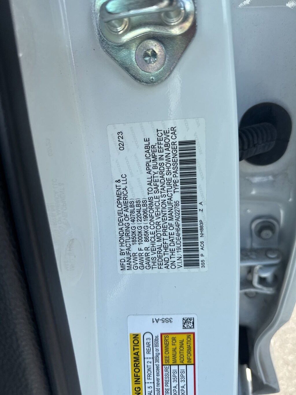 - 19UDE4H64PA022785