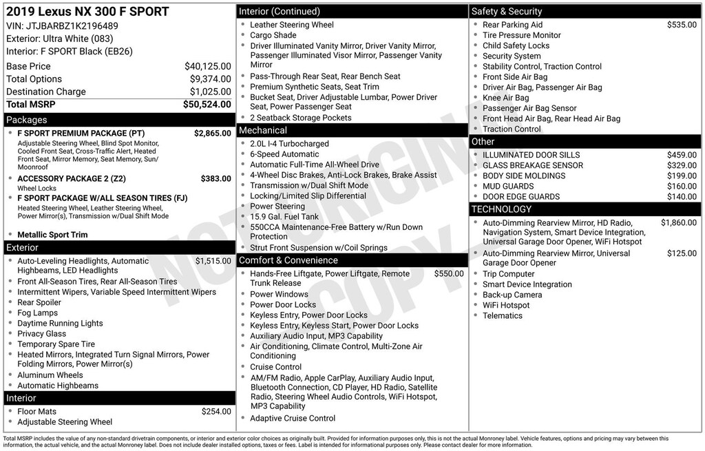 2019 LEXUS NX 300 300 F Sport