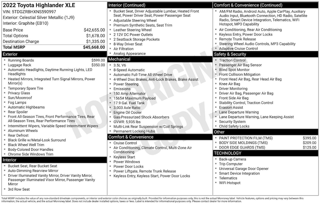 Price does not include licensing costs, registration fees, taxes and dealer doc fee of $999 which are to be paid by the customer.