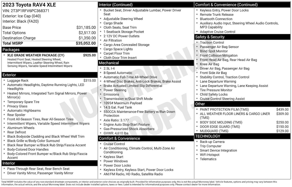 Price does not include licensing costs, registration fees, taxes and dealer doc fee of $999 which are to be paid by the customer.